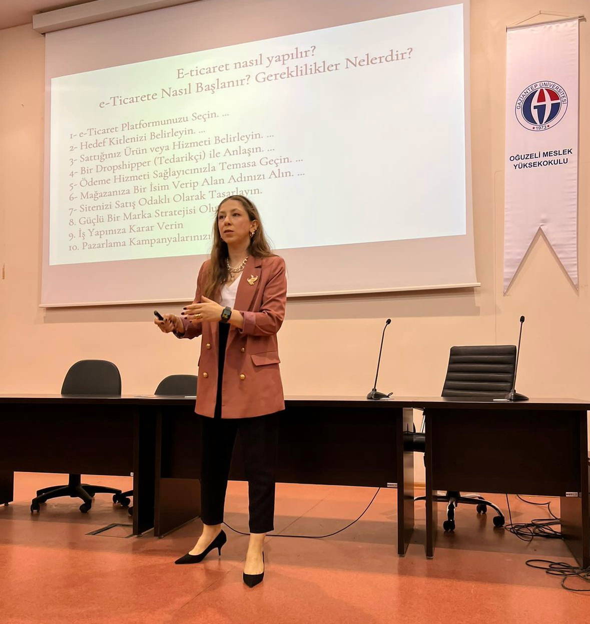 Gaziantep Üniversitesi (GAÜN) Oğuzeli Meslek Yüksekokulunda Yeni Ekonomi ve Ticaret 4.0 konferansı düzenlendi. Konferansa konuşmacı olarak katılan Dış Ticaret Uzmanı Hale Kirişçi, ihracat uzmanı olduğu dönemdeki mesleki tecrübelerinin yanı sıra ticaretin dijital çağdaki yerine değinerek, Acun Medya Akademideki dijital uygulamalar hakkında da bilgi verdi.