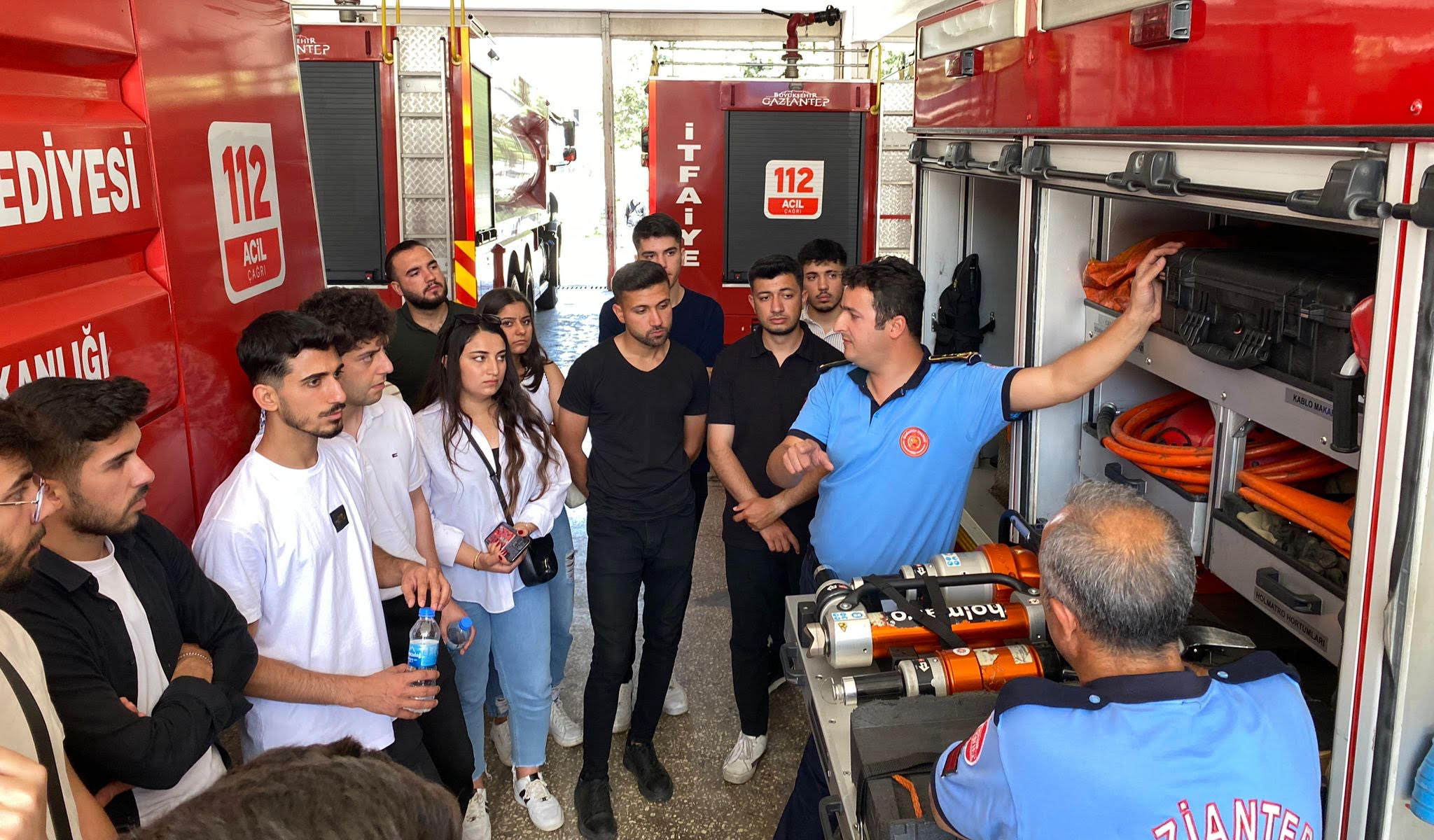 Gaziantep Üniversitesi (GAÜN) Oğuzeli Meslek Yüksekokulu Sivil Savunma ve İtfaiyecilik Programı öğrencilerine yönelik, itfaiyecilik mesleğini yakından tanımaları amacıyla Gaziantep Büyükşehir Belediyesi İtfaiye Daire Başkanlığına teknik gezi düzenlendi.