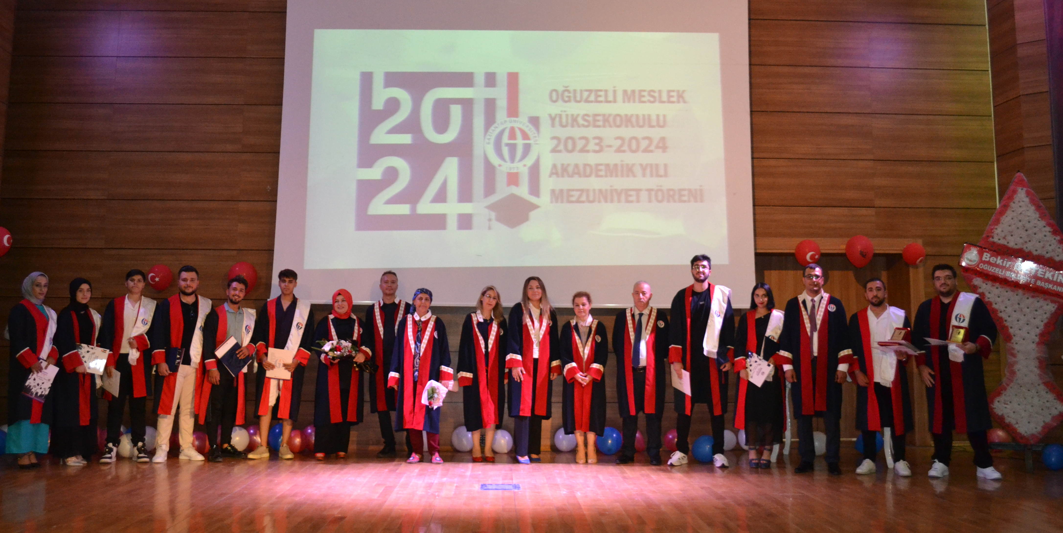 Gaziantep Üniversitesi (GAÜN) Oğuzeli Meslek Yüksekokulu 2023-2024 eğitim öğretim yılı mezunları, düzenlenen mezuniyet töreniyle coşkuyla uğurlandı.